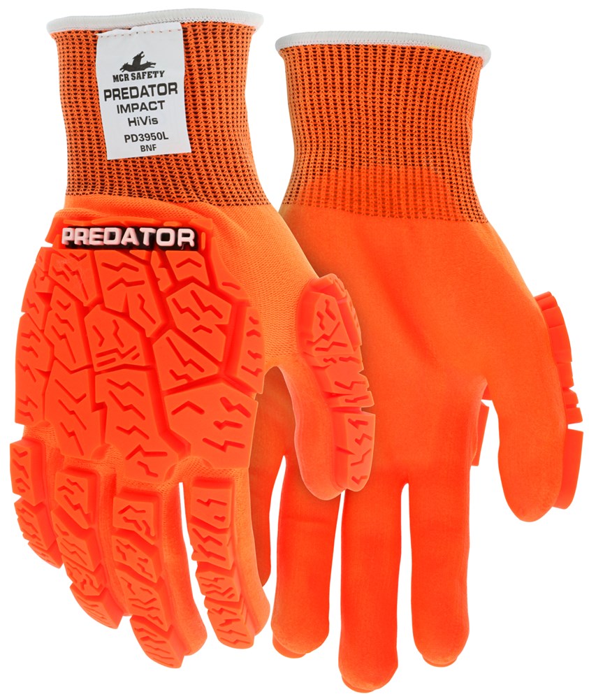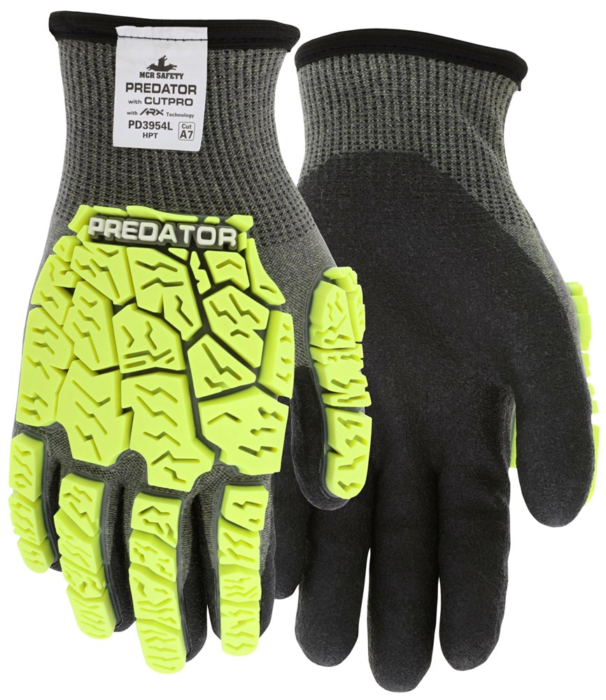 Predator® Mechanics Gloves Hi-Visibility Cut Resistant Work Gloves Tire Tread TPR on Back, Fingers,...