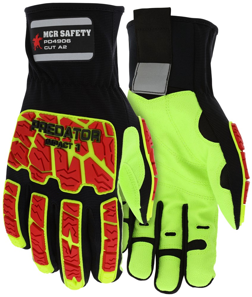 Predator® Impact Mechanics Glove Hi-Visibility Leather Palm Work Gloves TPR Back of Hand Protection...