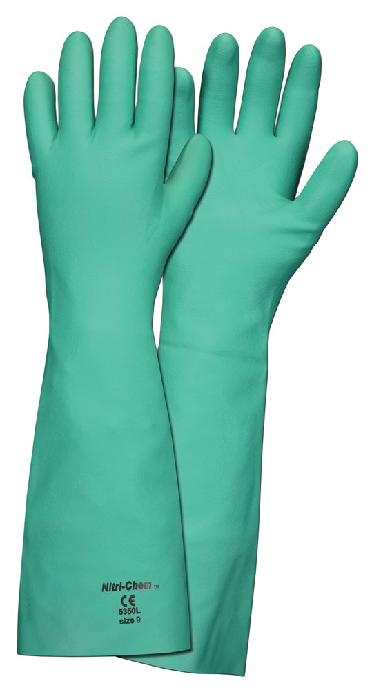 Nitri-Chem™ Unlined Green Nitrile Gloves Industrial Grade Extra-Long 18 Inches in Length 22 mil Thic...