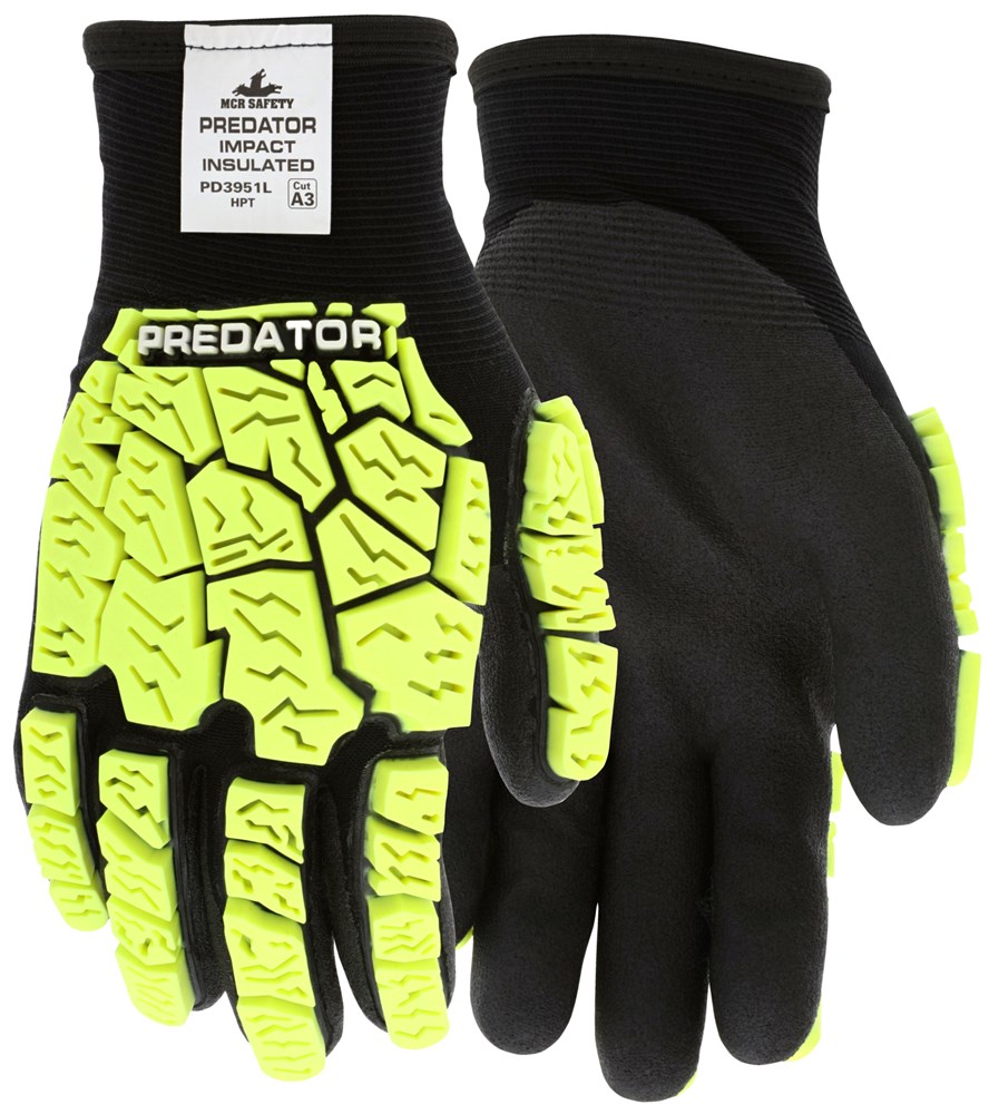 Predator® Insulated Mechanics Gloves Hi-Visibility Impact Resistant Work Gloves Tire Tread TPR on Ba...